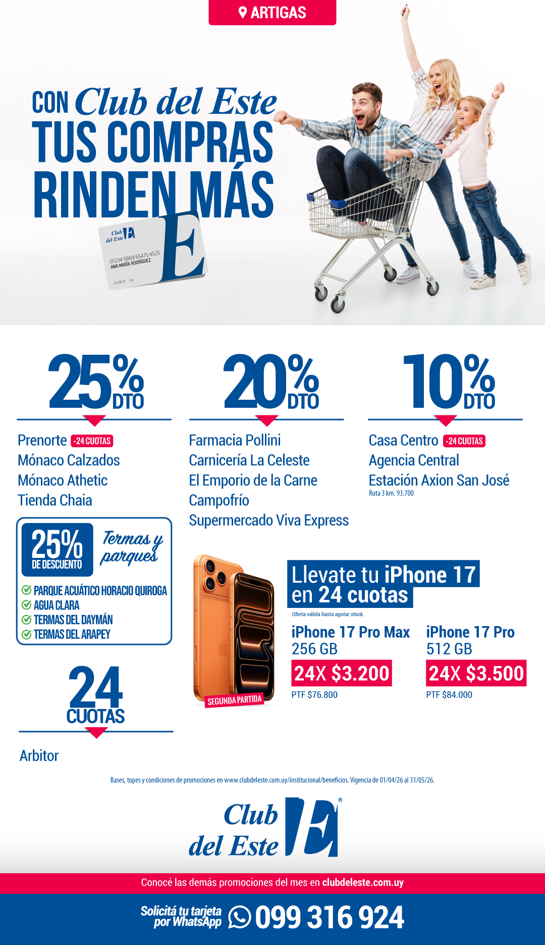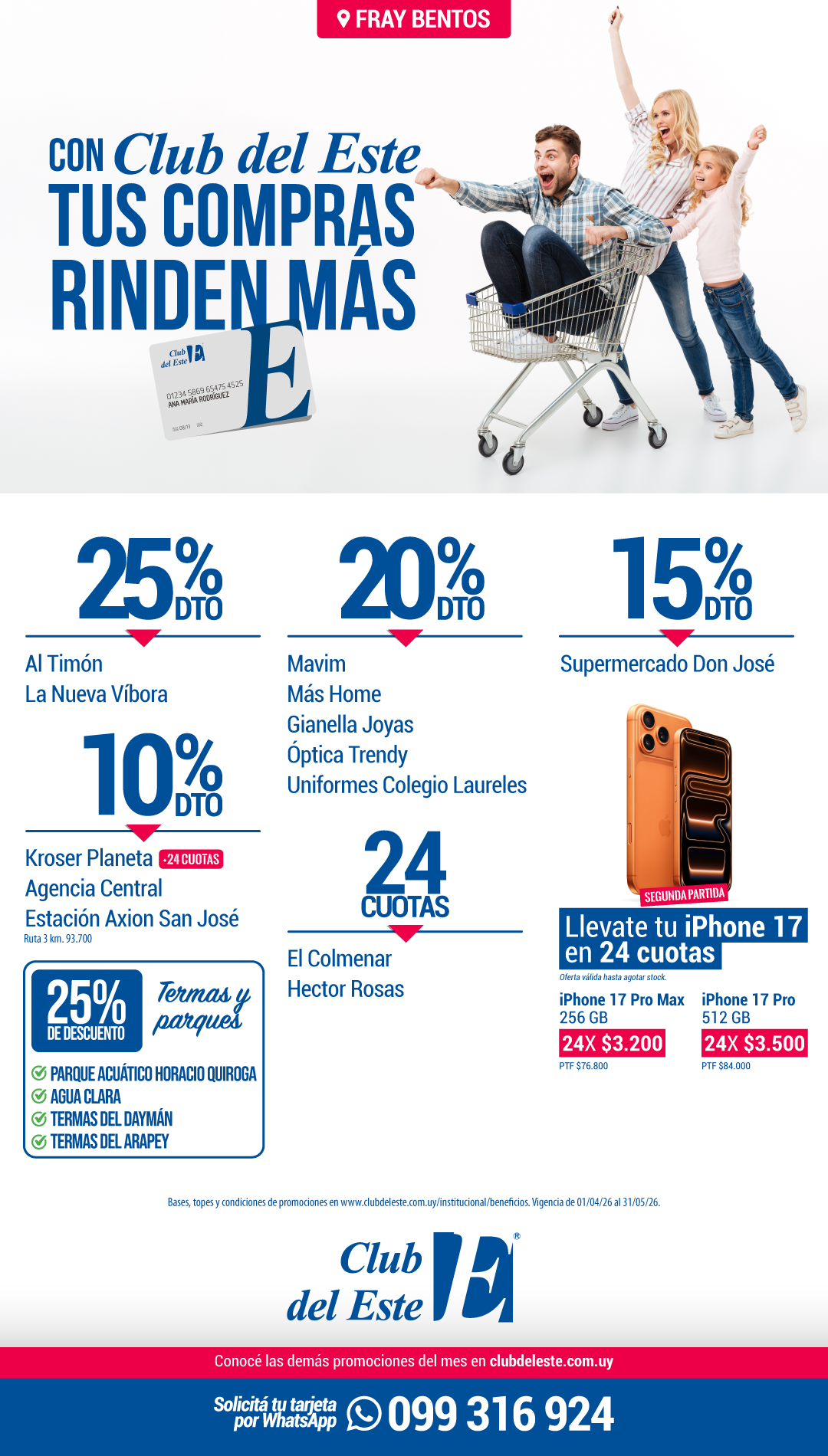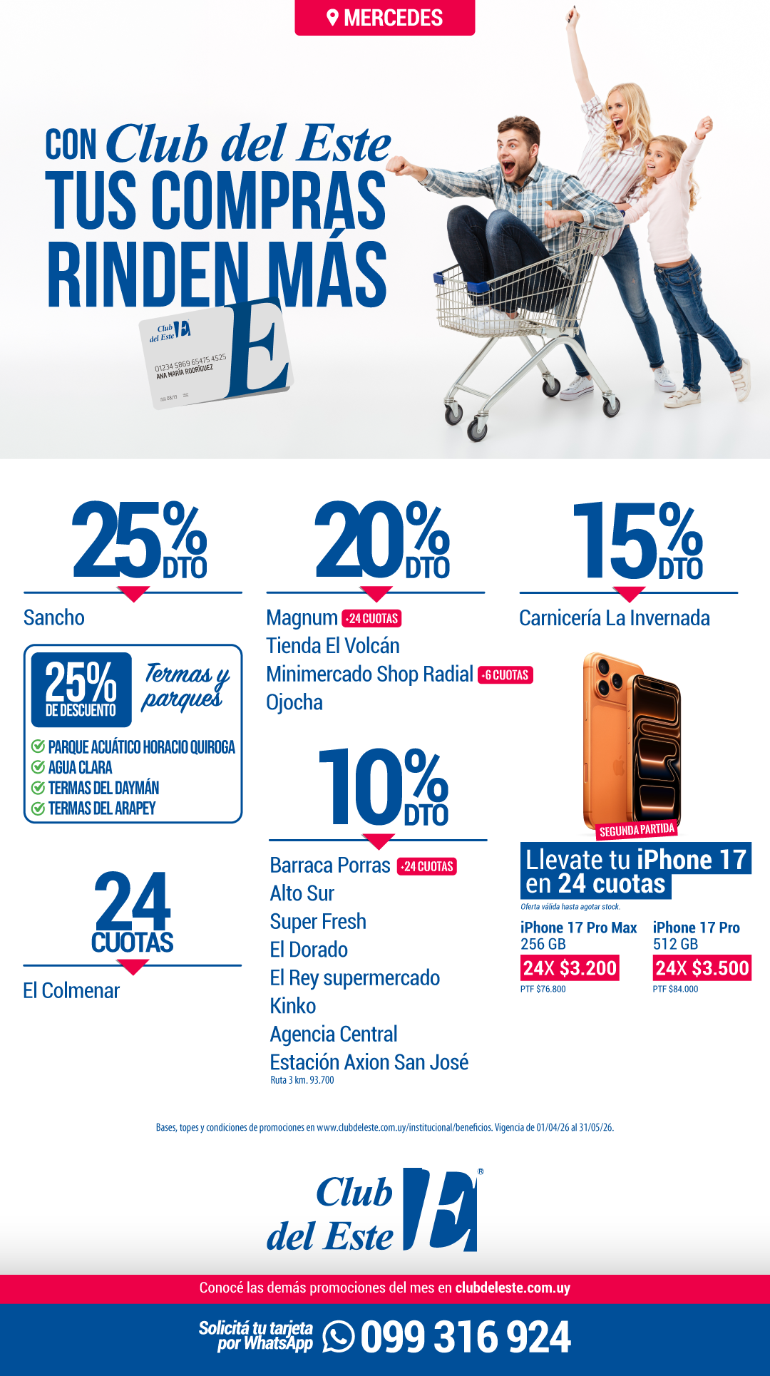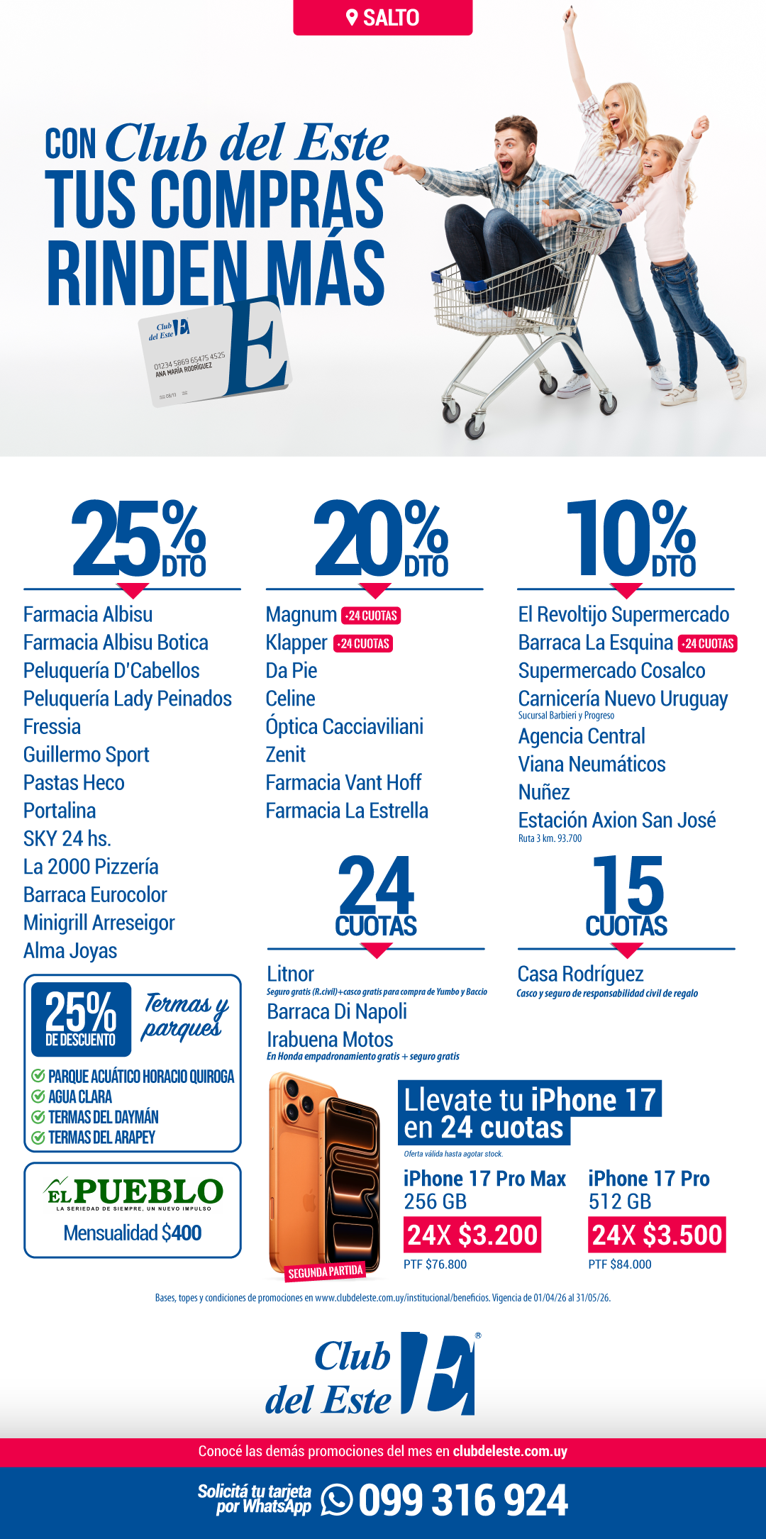 Solicitá tu tarjeta de Club del Este por WhatsApp al 099 316 924 y empezá a comprar con beneficios.
